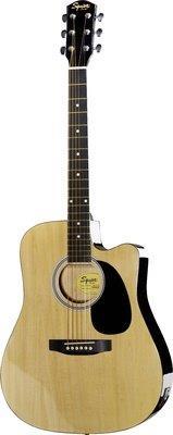Fender Squier SA-105CE NA Dreadnought Acoustic Guitar, cutaway, laminated spruce top, 20 frets, die-cast tuners,Fishman Isys-T pickup system with built in tuner, Colour: Natural